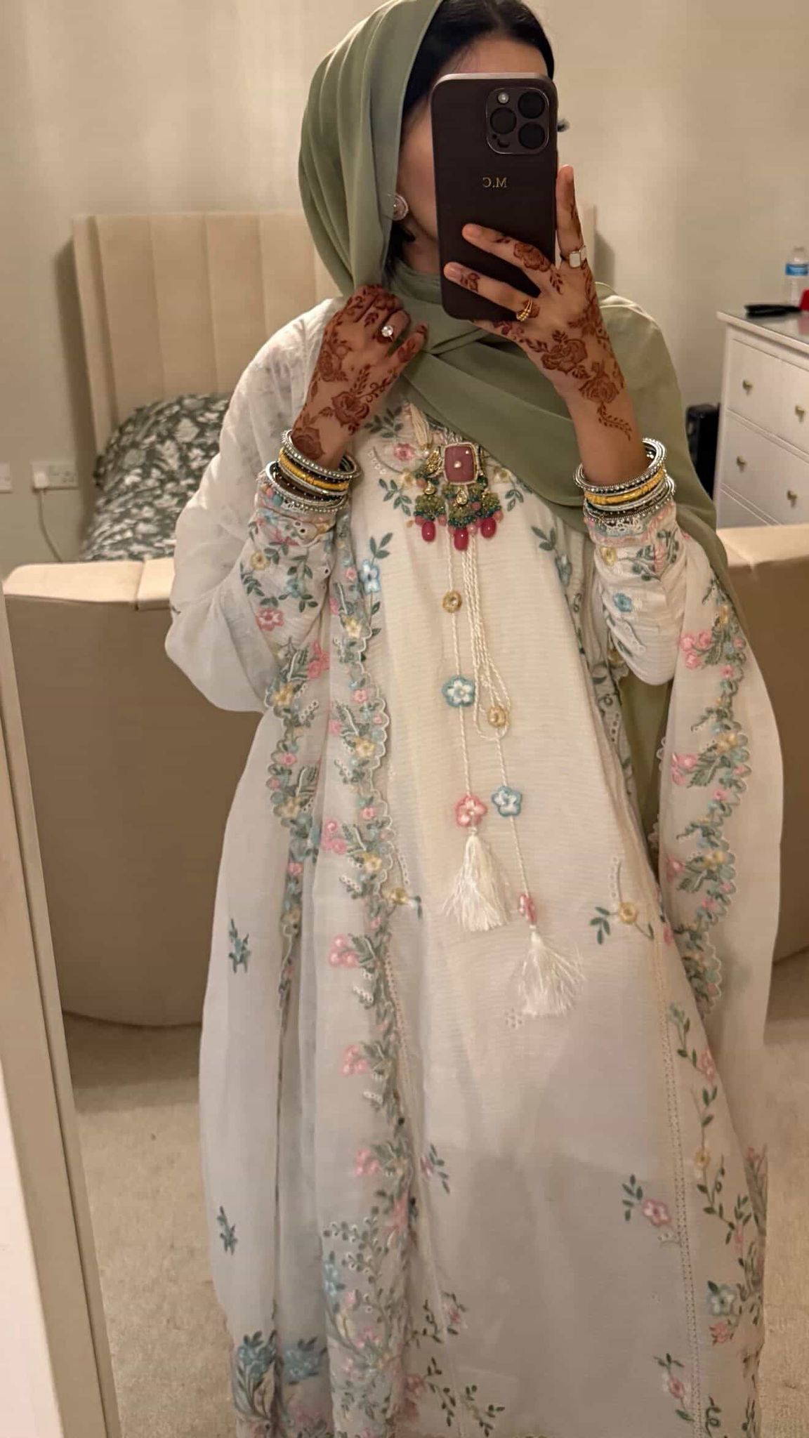 Completed with a scalloped embroidered dupatta, finished with an intricately detailed pallu.